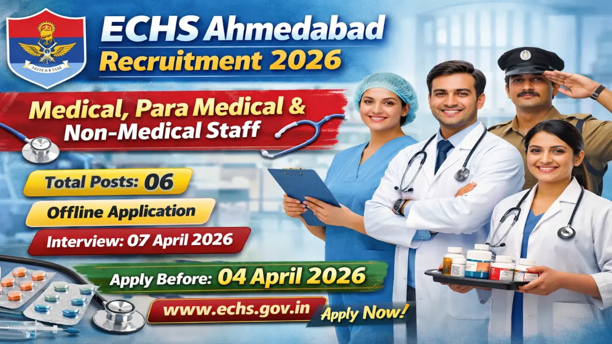 Short Information: The Ex-Servicemen Contributory Health Scheme (ECHS Ahmedabad) has released the official notification for the recruitment of Medical, Para Medical & Non-Medical Staff posts. Eligible candidates can apply by 04 April 2026. The walk-in interview will be conducted on 07 April 2026.