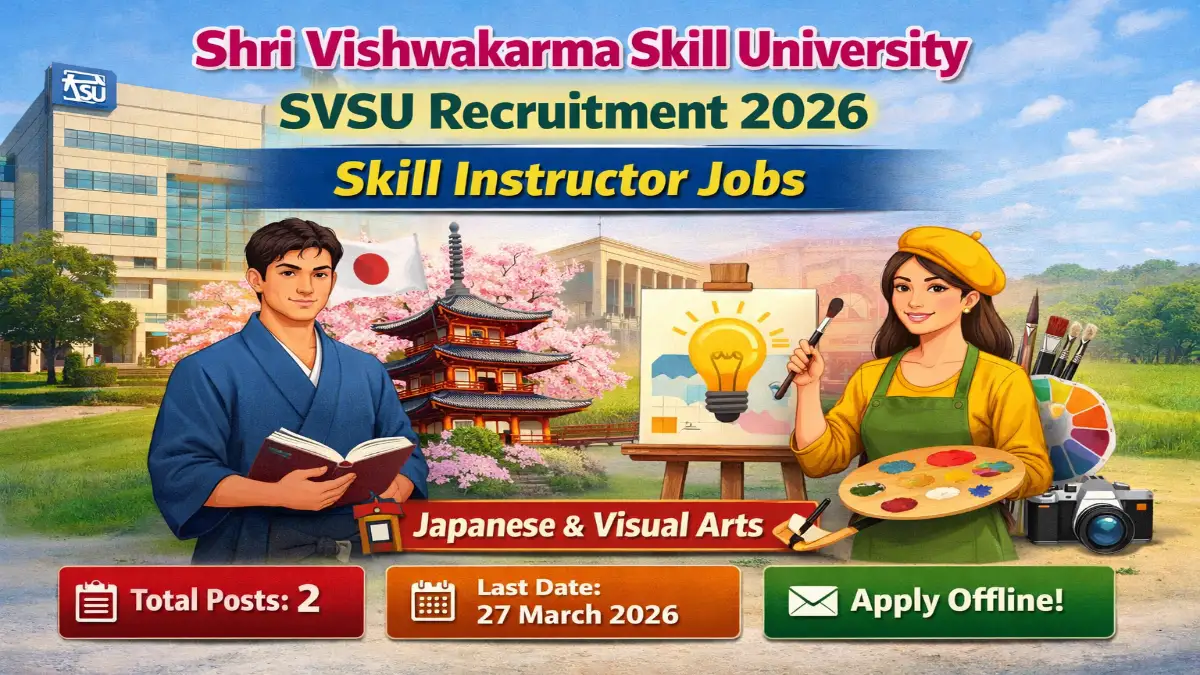 Short Information: The Shri Vishwakarma Skill University (SVSU) has released the official notification for the recruitment of Skill Instructor posts. Eligible candidates can apply offline by downloading the application form from the official website and submitting it before 27 March 2026.